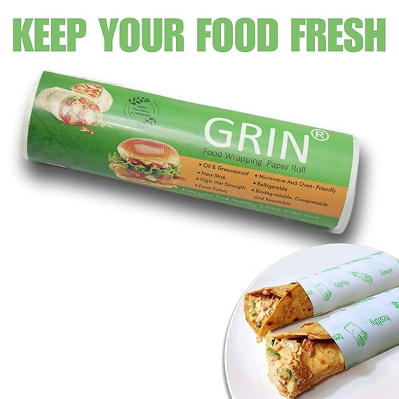 MULTI-PURPOSE :— GRIN Food Wrapping Paper offers Longer Freshness to the Food and it protects the Food’s moistness, Aroma and Flavours of food and keeps food bacteria-free for longer. Use for wrapping, baking, covering leftovers, storing and much more. Moisture lock to keep fruits, veggies and meat fresh.