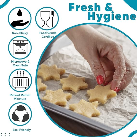 USED FOR BAKING:-Upgrade your baking experience with our high-quality Baking Paper. Its 100% oven and microwave safe construction, coupled with its no added wax or coating feature, make it the perfect choice for health-conscious individuals.