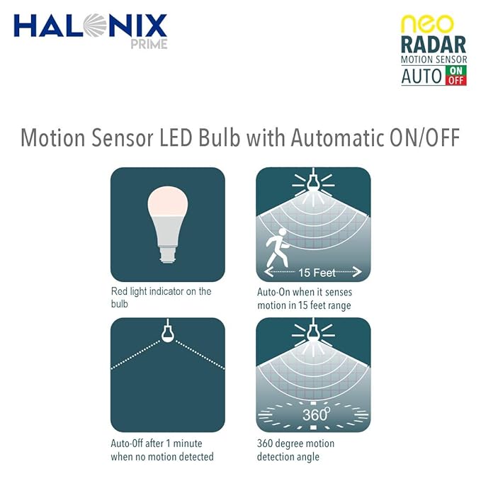 Halonix Prime 10W Neo Radar Motion Sensor B22 Led Light Bulb (Cool Day White) Pack Of 1