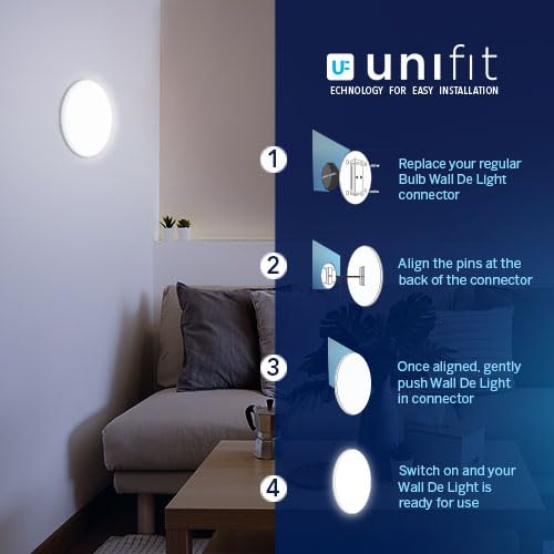 It’s a first unifit technology based wall light, Push and fix installation, Can replace conventional lamp holders, Decorative slimmest wall lamp, High grade polycarbonate housing.