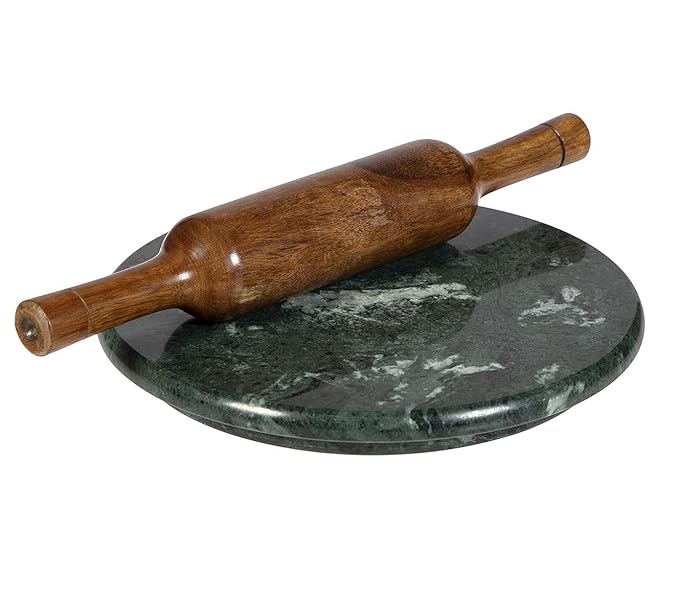 Hari OM India Premium Natural Green Marble Chakla/Roti Maker with Wooden belan