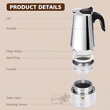 Harions Moka Pot Stovetop Espresso Maker | Stainless Steel | Induction Cookers,Espresso Coffee Maker (4-Cup 200ml)