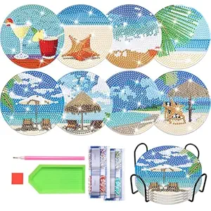 DIY FASHION COASTER SET: Dive into creativity with this set of 8 diamond painting coasters featuring striking beach resort themes. Each unique coaster invites you to channel your inner artist, making this not only a fun DIY project but also a functional addition to your table decor. Bring vibrant energy to your gatherings and impress your guests with these stunning, personalized coasters.