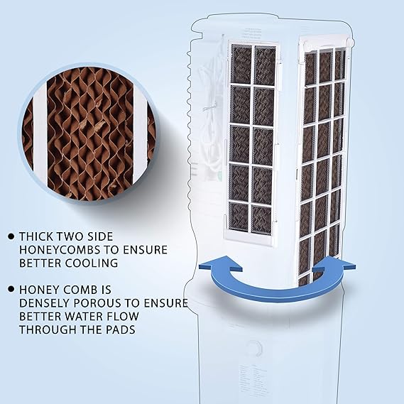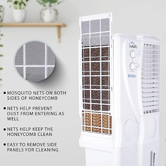 HAVAI Bullet Tower Cooler |6 Inch Vertical Blower |100 Sq Feet Area Coverage|20 Litre Tank Capacity, Two Side Honeycomb, 10 Feet Air Throw, 1 Year Warranty|3 Speed Control | White Color