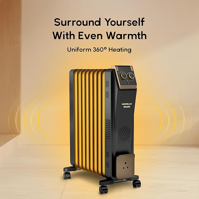 Havells 9 Fin Hestio Straight Fin OFR | 2400 Watt, Thermostatic heat control with 3 power settings & PTC fan control | Superior grade oil for long-lasting heat | (Pack of 1, Black)