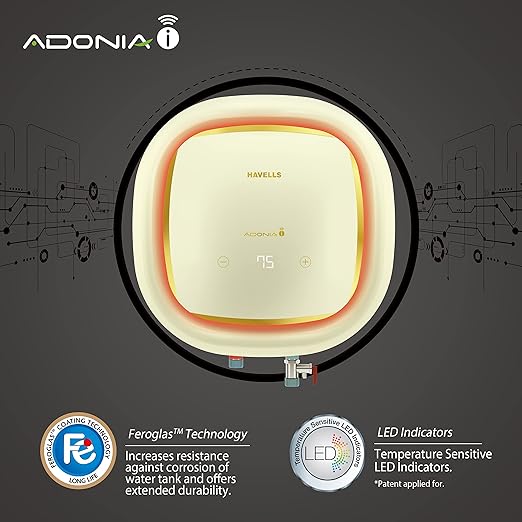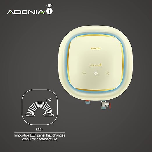 Havells Adonia-i 25 Litre Storage Water Heater | Color Changing LED, Digital Display, Smart Geyser, Works With Alexa & Google Home | (Free Flexi Pipes, Installation, & Shock Safe Plug) | (Ivory)