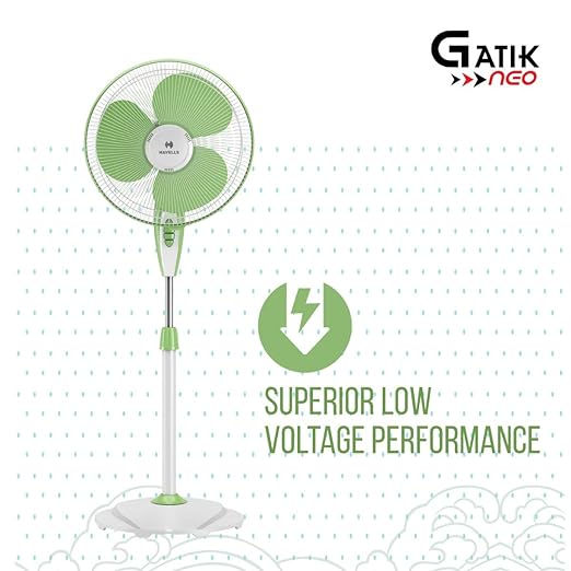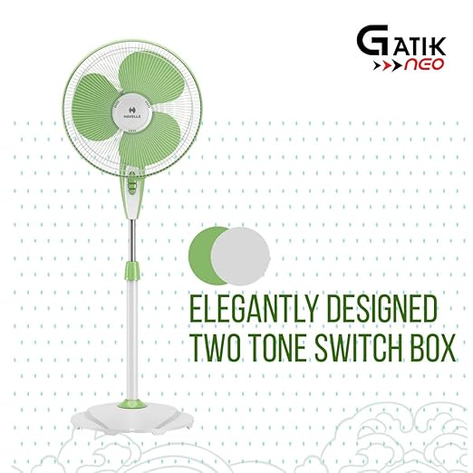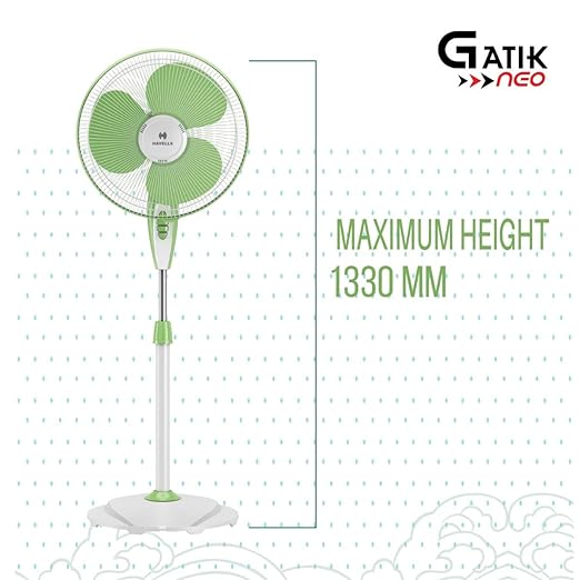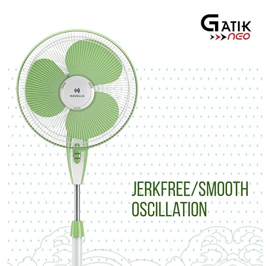 Havells Gatik Neo 400mm Oscillating Pedestal Fan | Upto 2 hours timer, auto OFF, Elegant look, 4 speed control | High Air Delivery | Aesthetic Design, Telescopic Arrangement | (Pack of 1, White Green)
