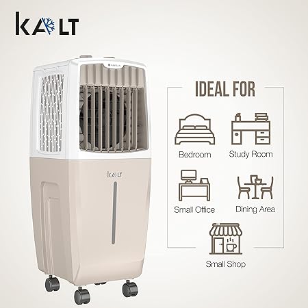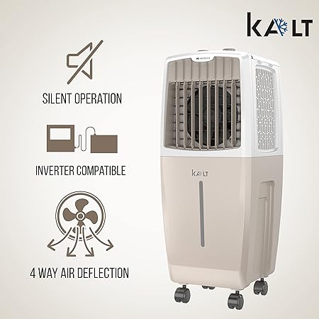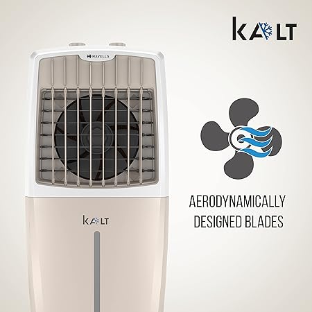 Havells Kalt 24L Personal Air Cooler for home | Powerful Air Delivery | Low Noise, Knob Panel | Everlast Pump | 4 Way Air Deflection | High Density Honeycomb Pads | Heavy Duty (White/Champagne Gold)