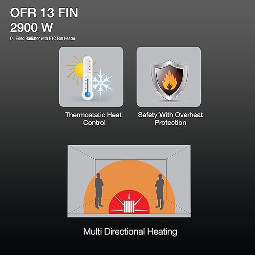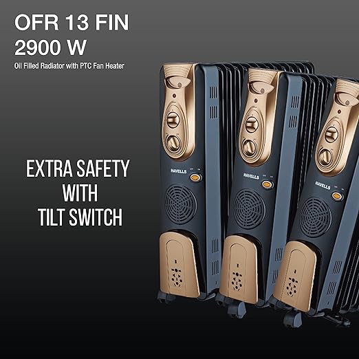 Havells OFR 13 Fin OFR 2900 Watt with 3 Heat Setting DUO Tech PTC & OFR (Black)