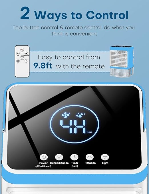 HIFRESH Mini Cooler for Room Cooling, USB Operated Mini Air Cooler with Remote, LED Screen, 90ยฐ Rotate, 7-Color Light, 4H Timer, 2 Cool Mist, 800ml Ice Chamber, 3 Speed Strong Airflow Desk Cooling Fan
