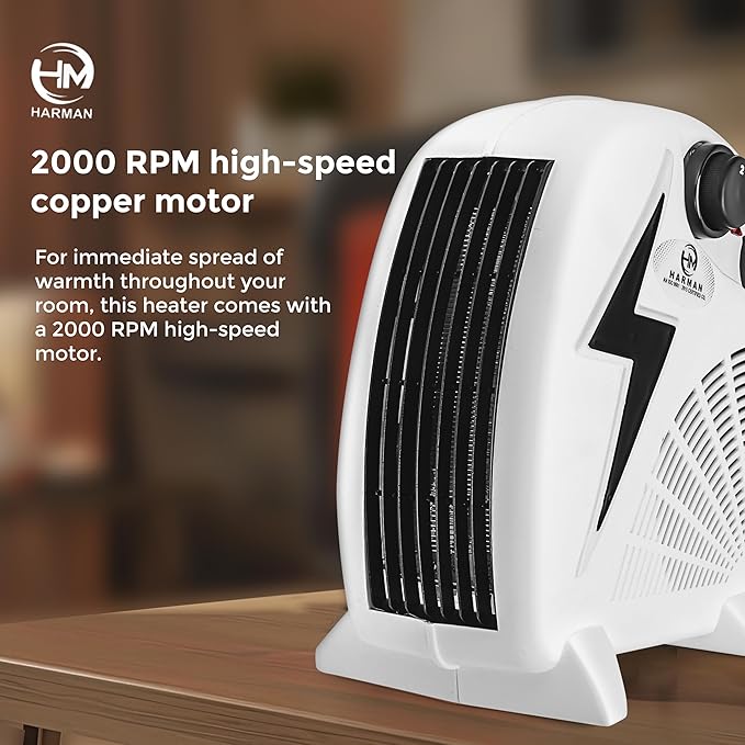 HM 2000W Room Heater | 2 Air Settings & Silent Operation Fan Heater | Compact Design | Auto Thermal Cut-Off | Comfortable Breathing & Anti-Dryness | with 1 Year Warranty (Bolt)