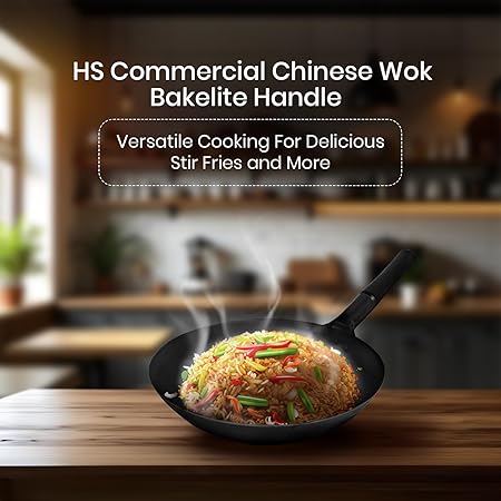 HS Chinese Wok with Bakelite Handle – 14 Inch, Heavy-Duty Carbon Steel for Stir-Fry, Deep-Frying, and More – Versatile, Easy-to-Clean Cooking Essential, ONLY for Commercial USE