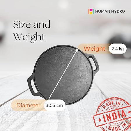 Human Hydro Pre-Seasoned Feather Light Cast Iron Tawa for Dosa/Chilla/Omelette | 30.5cm/12.1 inch, 2.4kg | Induction Friendly | Nonstick, Pre-Seasoned Tava, 100% Pure & Toxin-Free, No Chemical Coating