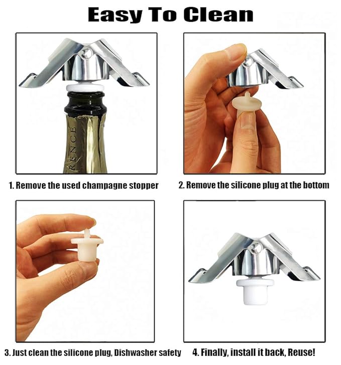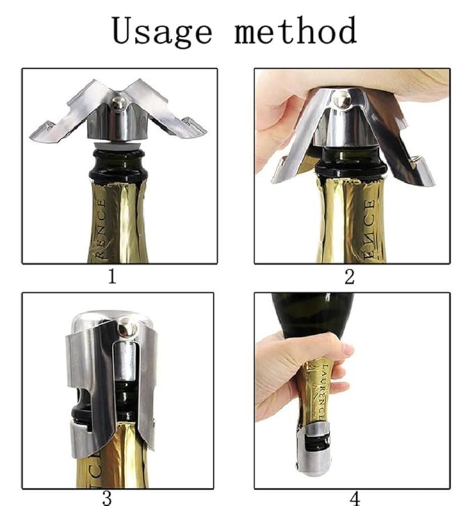 HUNCHA Champagne/Wine Sealer Stopper, Stainless Steel Sparkling Wine Bottle Plug Sealer with a Longer Sealing Plug, No Sharp Edge, No Sharp Edge, No Leaks No Spills Fizz Saver, Random Color, Pack of 1