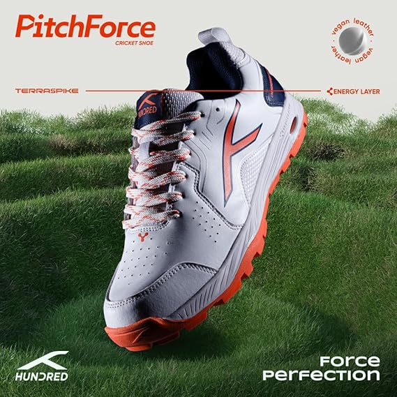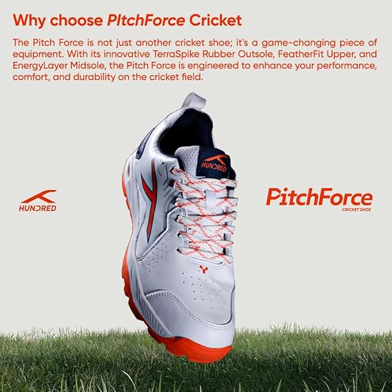 HUNDRED Pitch Force Cricket Shoes | Terraspike Studs | Embedded Support Plate for Stability | Lightweight & Durable | Ideal for Turf, Ground & Hard Surface