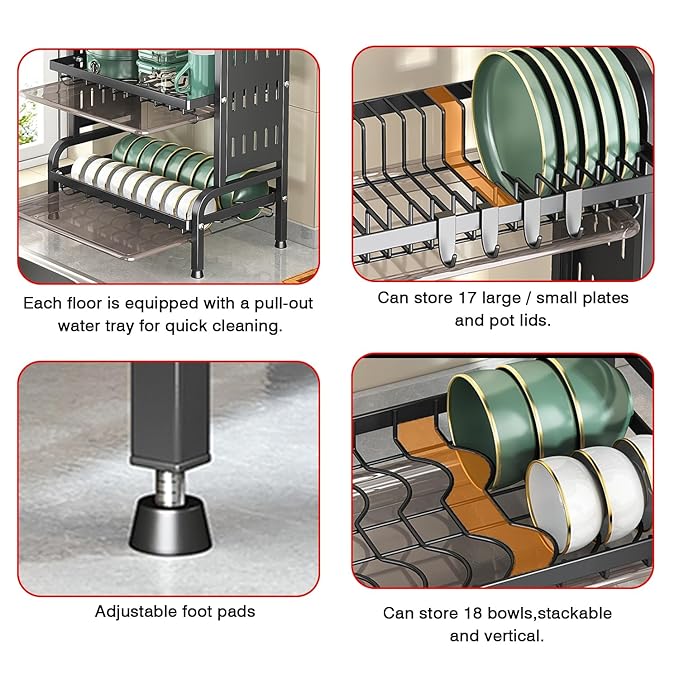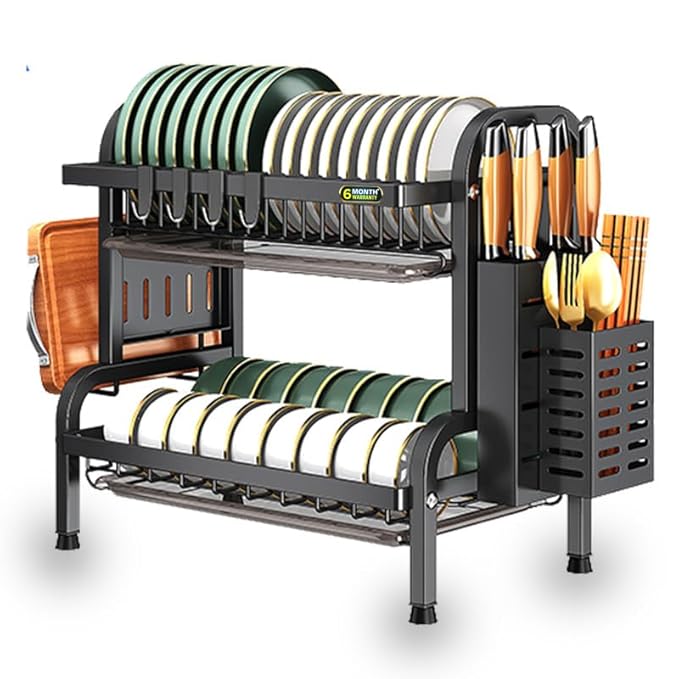 Large Capacity: Spacious 2-tier design accommodates multiple dishes, utensils, and kitchenware.