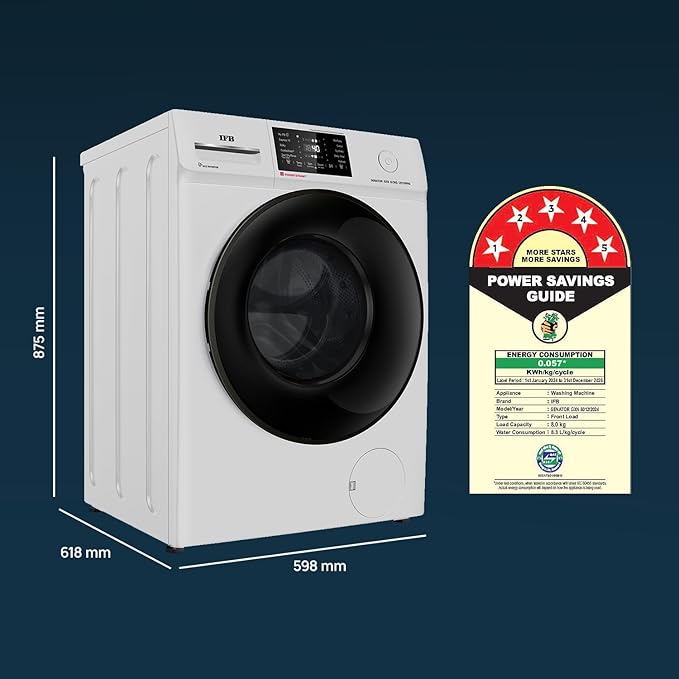 IFB 8 Kg 5 Star with 9 Swirl Wash, AI Powered, Wi-Fi, Fully Automatic Front Load Washing Machine (Senator GXN 8012, Steam Refresh Program with Eco Inverter, Grey)
