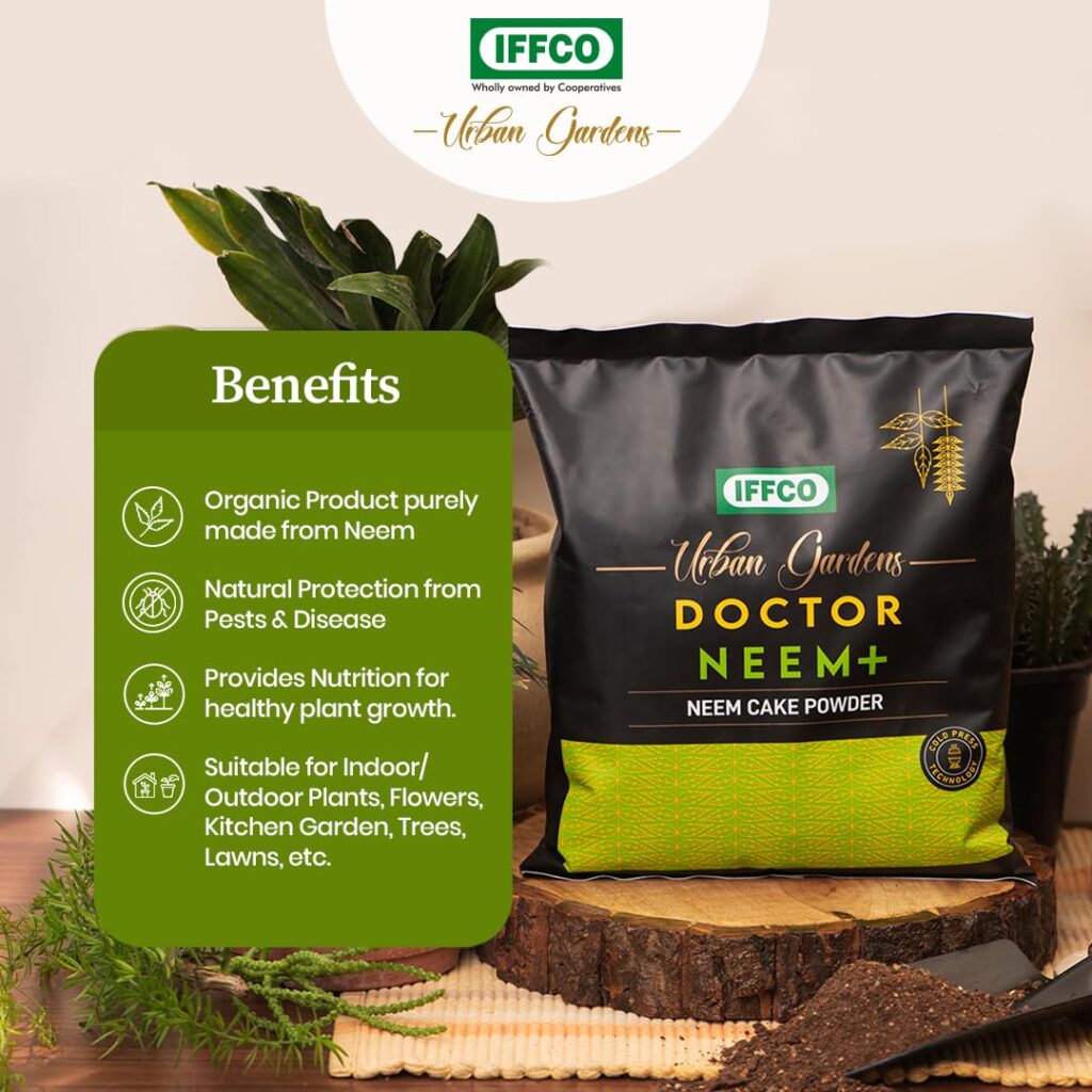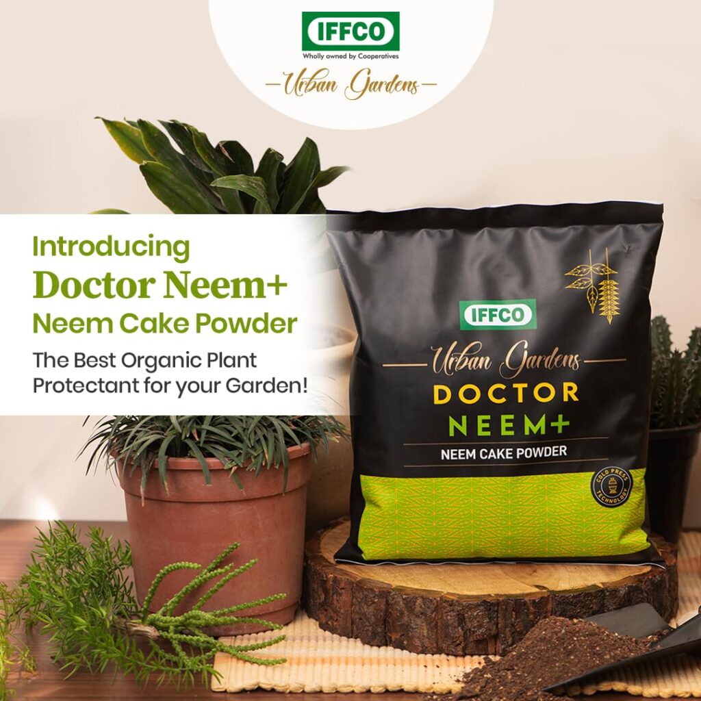 IFFCO Urban Gardens – Dr Neem+ Cake Powder/Neem Khali – 900gm – Extracted Through Cold Press Technology – Higher Azadirachtin & Neem Oil Content – Organic Fertilizer and Pest Repellent for Plants