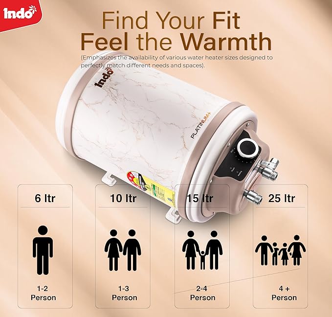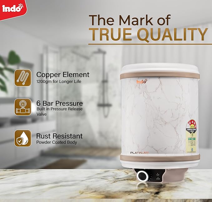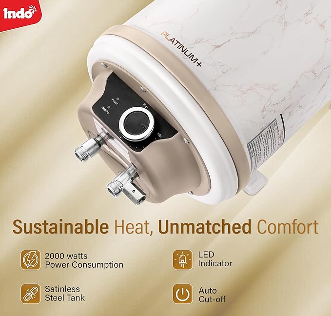 Indo 10 Litre Storage Water Heater (Geyser) PLATINUM PLUS-10 with Marble finish| 2000 Watts | 2 Years Product Warranty & 5 Years Warranty on Tank (Grey) (WHITE, 10 LTR)