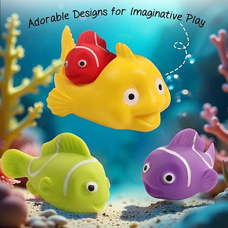 Intellibaby Premium 4-in-1 Squeezy & Squeaky Bath Toys for Babies | Non-Toxic & Safe Floating Water Toys for 3+ Months | Colorful Silicone Bath Toys for Newborns |Birthday Gift for Infants (Fishy)
