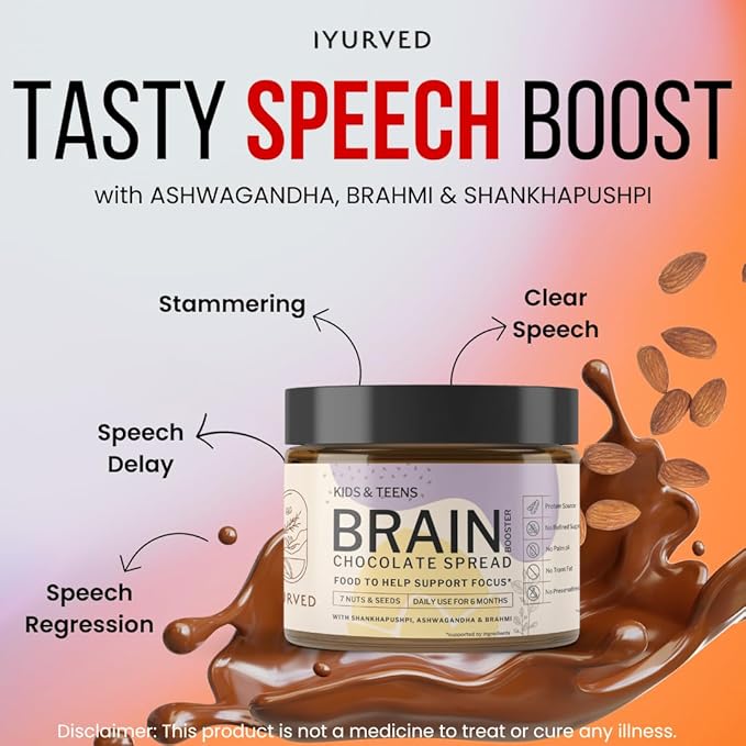 Iyurved Good for Speech delay, Eye Contact, Concentration, Memory, Focus : Kids and Teens Brain Booster Chocolate Spread, 500 Gm | Shankhapushpi | Ashwagandha | Brahmi | (500gm)