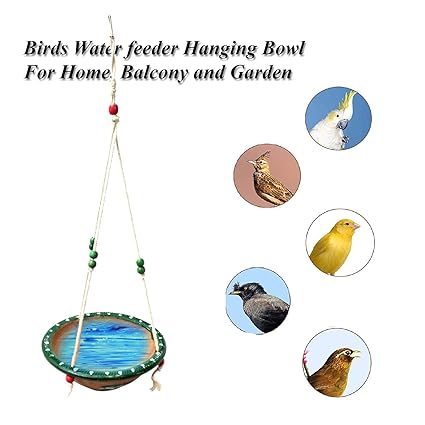 JAINSONS PET PRODUCTS Hanging Outdoor Bird Feeder | Earthenware Bird Feeding/Watering Bowl For Birds Pack Of 2