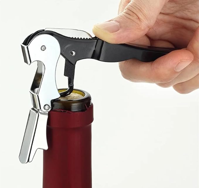 Jay International 3in1 Wine Corkscrew with Knife and Bottle Opener, Wine Opener Stainless Steel (Black) (1)