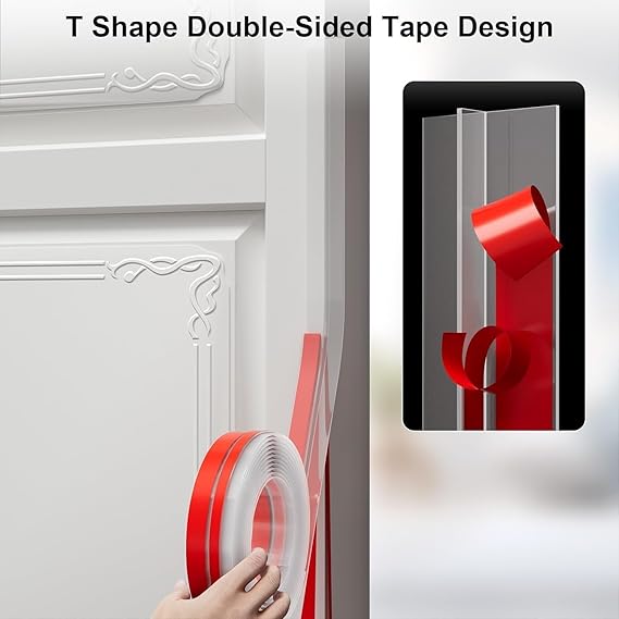 JICOOT T-Shaped Door Draft Stopper, Silicon Door Bottom Sealing Strip|Self Adhesive Door Gap Filler Rubber|Door Bottom Sealing Strip Guard|Protector from Cockroach,Bugs,Air & Dust (Clear(3 Meter))