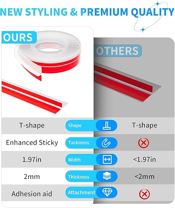 [WINDPROOF & SOUNDPROOOF] JICOOT silicone sealing strips are designed to fit around the edges of doors and windows on one side, with the T-shaped portion fitting around the door or window gap, and the other side without adhesive backing to insulate against airflow, dust and noise. Create a more comfortable and quieter living space.