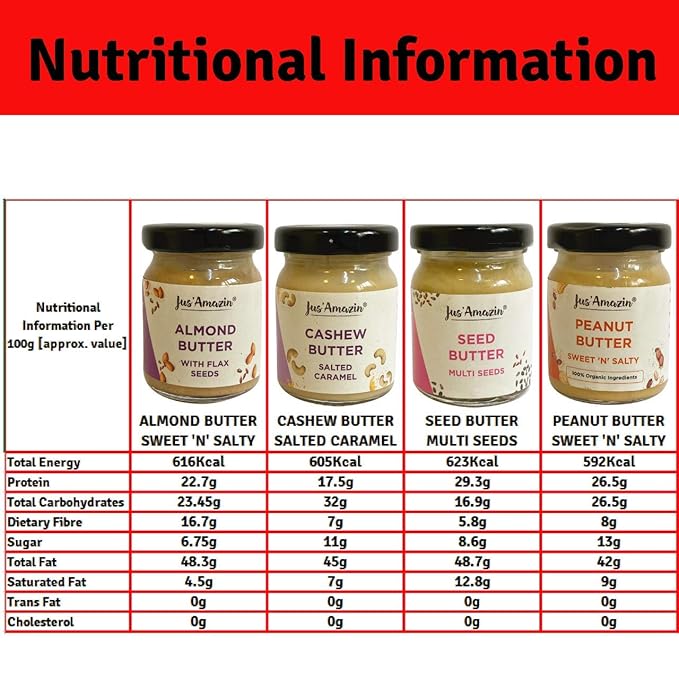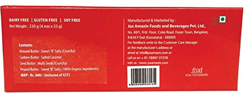 Jus’ Amazin Multi Nut Butter Combo Pack – Diwali Gift Box | Almond Butter, Seed Butter, Cashew Butter & Peanut Butter (4 X 55 g), High Protein, Vegan, Dairy Free, Soy Free, Gluten Free, 100% Natural, Plant-Based