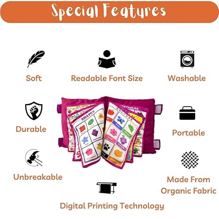 Kids Educational Toys : This Cushion Book helps your kids to educate is an unique way. kids can learn 12 things like ABCD, Fruits, Vegetables and other basic things