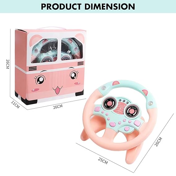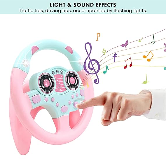 Kidology Musical Toys, Kids Steering Wheel Toy for Backseat with Car Key Pretend Driving Simulated Driving with Light & Music | Interactive Driving Wheel with Music, Pink