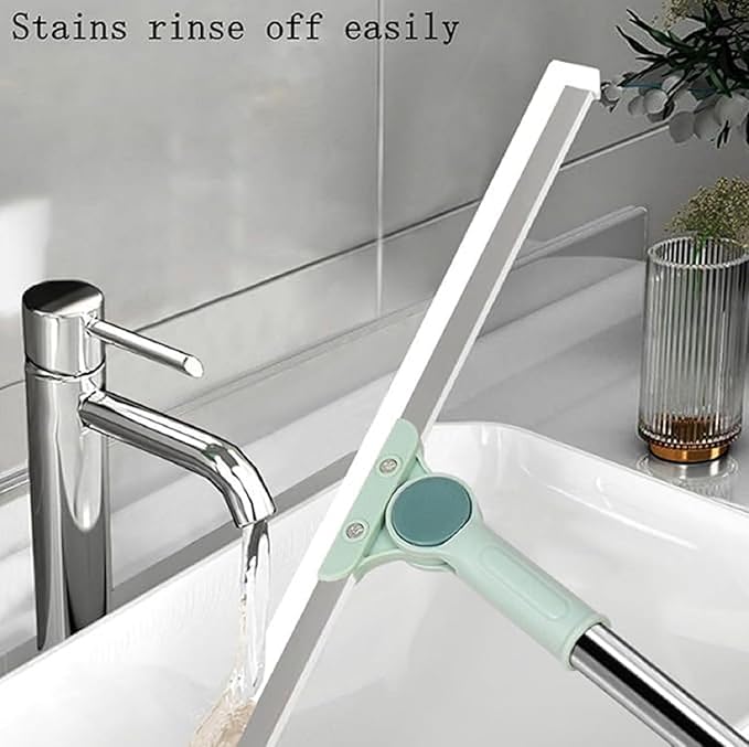 KIRIADA Magic Broom Floor Squeegee Wiper with Long Handle Adjustable 180 Degree Rotating mop Silicone Strips Stainless Steel Silicone Blade Floor Wiper for Home,Office, Shop,Bathroom,Tile Pet Hair.