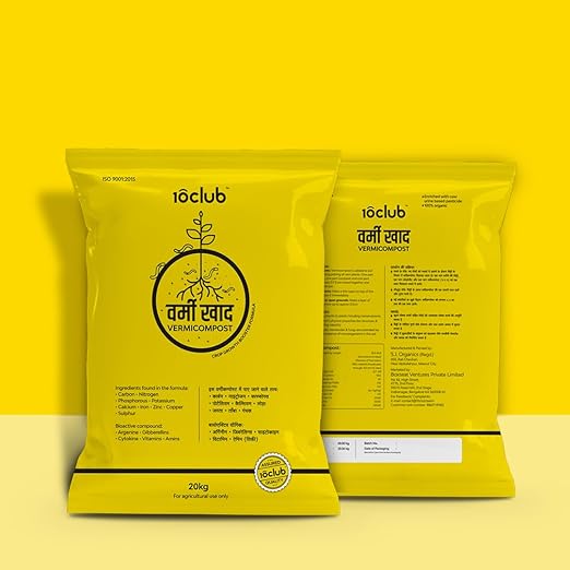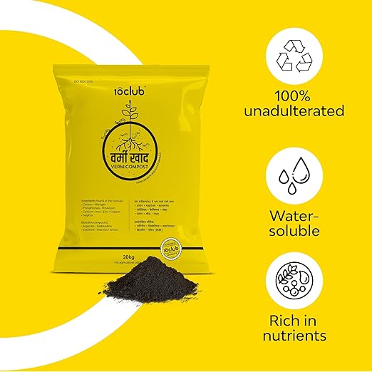 Kraft Seeds by 10CLUB Vermicompost – 20 kg | Enriched with Cow Urine, Cow Dung, Organic | Vermicompost for Agriculture Farming Greenhouse | Fertiliser Manure for All Plants | Non-toxic, Odorless