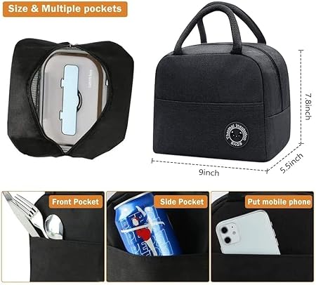 Krisus® Lunch Bag for Office, School, Travel Lunch Box Storage Bag for Adults Man, Women Girls Stylish, Insulated Tiifin Bag Tote Bag for Women, Picnic Bag Large Capacity Bag (Black, 1pcs)