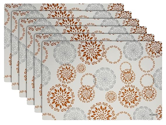 Kuber Industries Design 6 Pieces PVC PVC 6 Piece Dining Table Placemat Set,White, Standard (Hs_37_Kubmart020139, Polyvinyl Chloride)