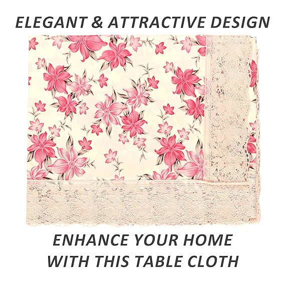 Kuber Industries Floral Print Exclusive Table Cloth|PVC 4 Seater Center Table cover|Table Sheet For dining, Party, Events|Waterproof Protector|Indoor And Outdoor Use “60×40” (Cream & Pink)