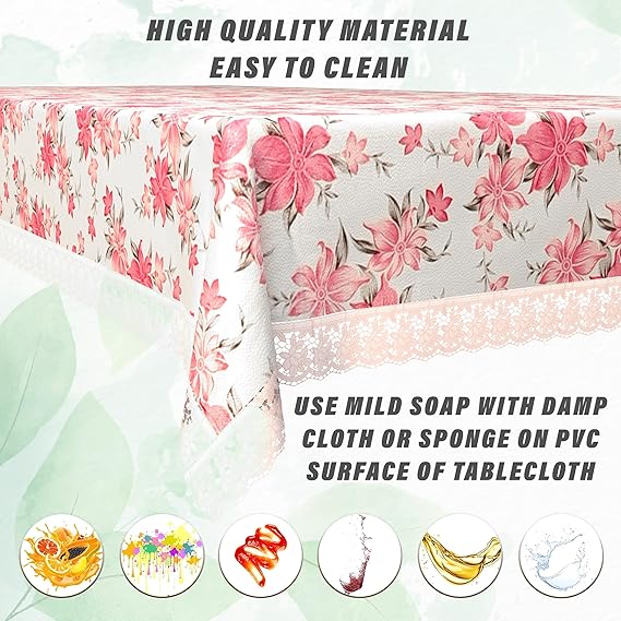 WATERPROOF & WASHABLE: This Table Cover is waterproof and washable, making it easy to clean and maintain. The PVC material makes it resistant to water, so you don’t have to worry about any liquid spills damaging your tablecloth. Additionally, it can be easily washed by wiping it clean with a damp cloth or mild detergent.