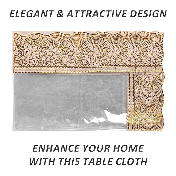 Kuber Industries PVC 6 Seater Transparent Dining Table Cover (Gold)