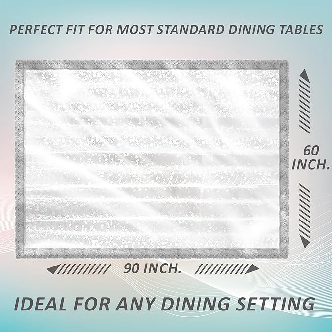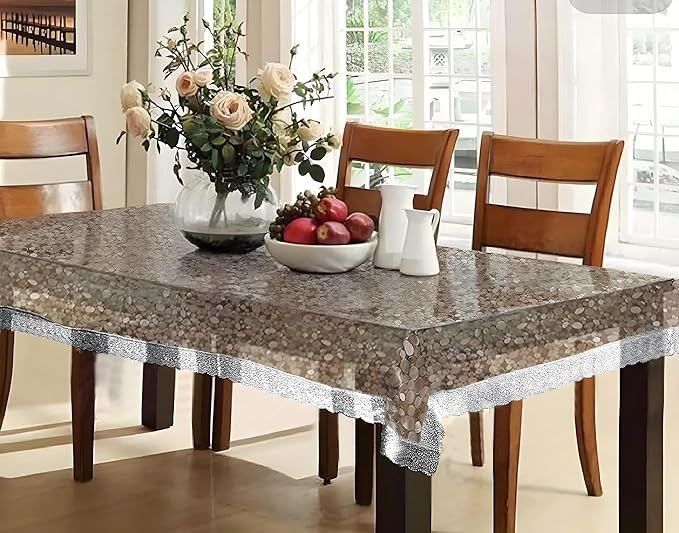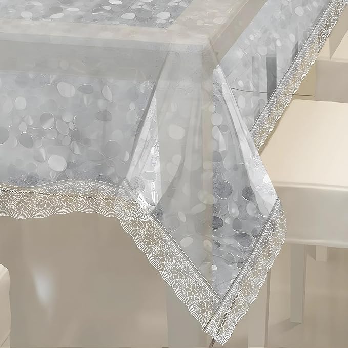 Kuber Industries Table Cloth For Dining|”90×60″ Inch |Stone Print Dining Table cover 6 Seater|Waterproof Table Sheet, Silver Lace (Silver)