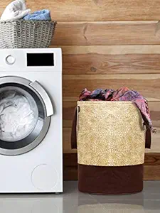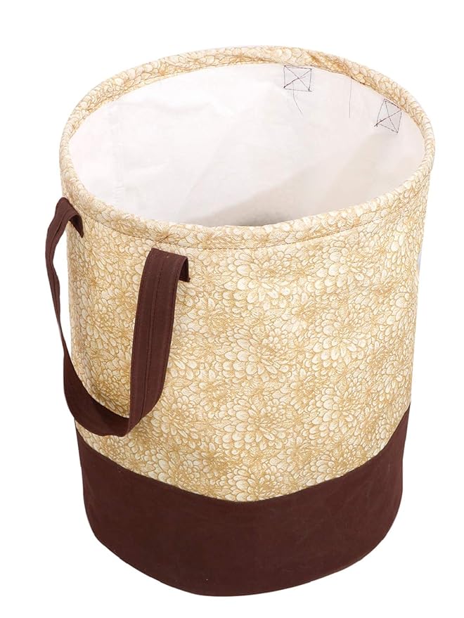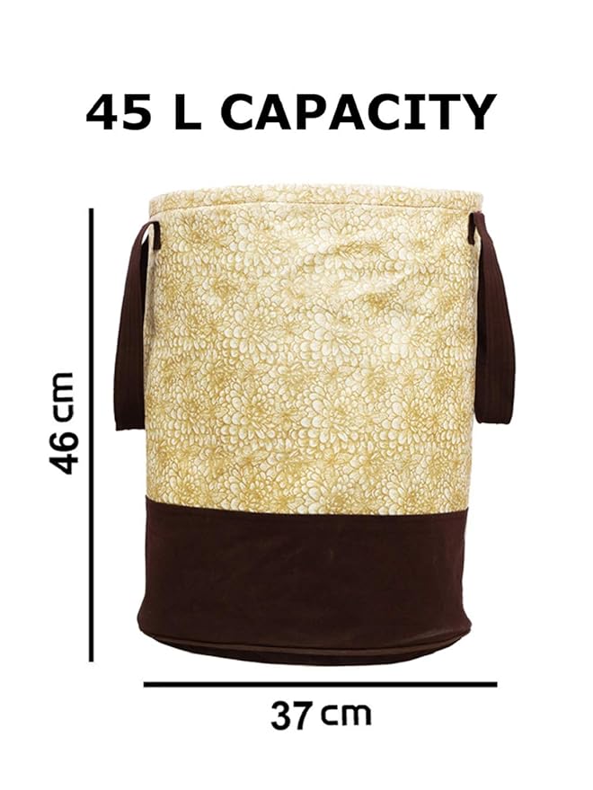 Kuber Industries Waterproof Canvas Laundry Bag/Hamper|Metalic Printed with Handles|Foldable Bin & 45 Liter Capicity|Size 37 x 37 x 46, Pack of 1 (Brown)