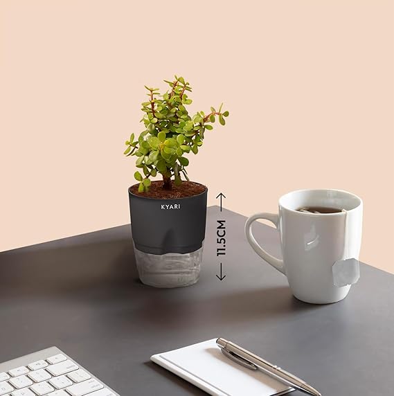 KYARI Good Luck Jade Plant Crassula Ovata Live Indoor Plants with Black Self Watering Pot, Best for Living Room, Kitchen, Bedroom, & Office Table