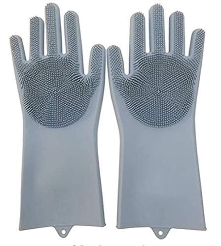 Lecherous Silicone Hand Gloves For Dish Washing Kitchen Bathroom Car Cleaning Pack of 1 Pair, Multicolor