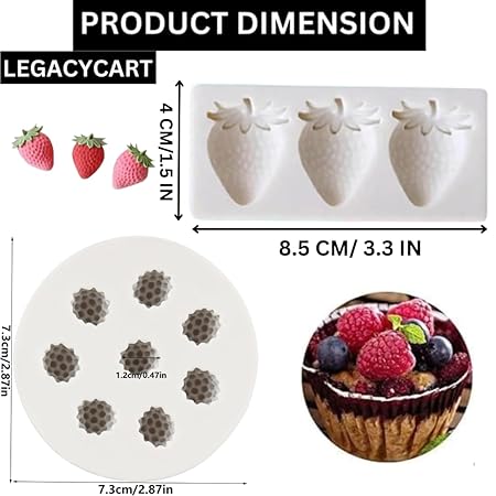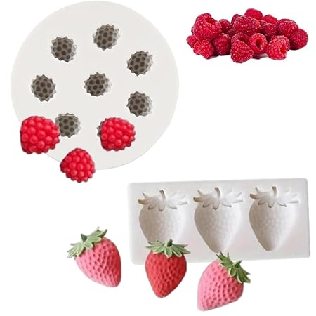 LEGACYCART 2 PCS Raspberry and Strawberry Cake Fondant Molds Berry Series Sugarcraft Gumpaste Silicone Mold for Chocolate Candy Cupcake Topper Decorating Polymer Clay (Pack of 2)