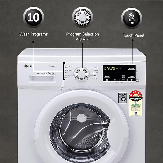 LG 7 Kg, 5 Star, Direct Drive Technology, Steam Wash, 6 Motion DD, Smart Diagnosis, Fully-Automatic Front Load Washing Machine (FHM1207SDW, Allergy Care, In-Built Heater, Touch Panel, White)