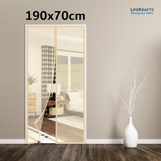 LifeKrafts Polyester Magnetic Mosquito Net for Door | Mosquito Curtain for All Door Types & Sizes | Auto-Closing Insect Screen to Keep Mosquito Out (190×70 cm, Beige)