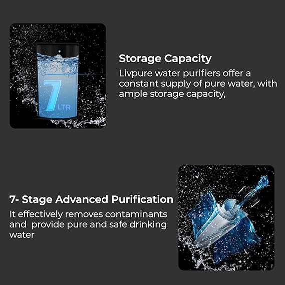 7 Stage Purification: Livpure GLO PRO++ provides 7 stage advanced purification: 1) Sediment Flter 2) Pre-activated Carbon Absorber 3) Anti-Scalant Cartridge 4) RO Membrane 5) UV Disinfection 6) Ultra Filteration 7) Silver Impregnated Post Carbon Filter
