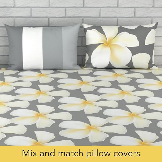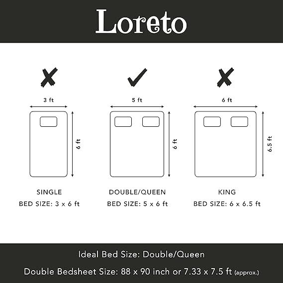 LORETO – A QUALITY LINEN BRAND 100% Cotton Bedsheet for Double Bed, 1 Double Bedsheet with 2 Pillow Covers | 144 TC Queen Size Double Bedsheet Cotton, Floral (White & Grey)