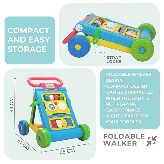 Mama Luv Mee Baby Activity Walker Learning Push Walker for Babies 6 to 18 Months, Foldable Musical Walker with Recreational Toy Bar (Blue)
