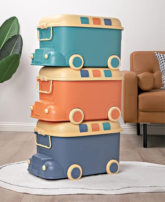 MAPPLE CREATION Toy Chest Large Plastic Stackable Organizer Storage Box Container Bin with Lid and Wheels for Kids Toys, Clothes